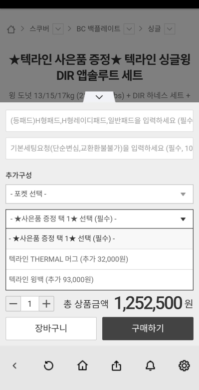윙세트 구매하려고하는데, 사은품 선택이 필수인가요? 제가 첨부한 사진처럼 각 사은품 선택시 +3만원, +9만원이 추가돼서요.
