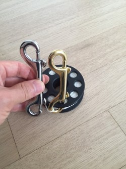 손에 딱 들어와서 사용하기 좋아요. 30m 도 괜춘한데 저는 20m에 라인 얇은 것으로 바꺼서 사용하면 40m 까지 감을수 있습니다. 중간에 스토퍼 정도 만들어서 사용하면 더욱 편합니다. 너무 편하고 가지고 다니는 것도 정말 편합니다. 강력 추천 합니다. 하지만, 단점이 있습니다. 더블엔드비너 손이 크신 분은 따로 구매 하셔야 됩니다. ㅜ,.ㅜ 손이 작은 분들은 사용할 수 있는데, 손이 크고 장갑을 끼게 되면 불편 합니다. 비교 30M 스폴 입니다. 더블엔드비너도 비교 샷 올립니다.