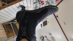 전에는 이름 없는 3만원짜리 슈즈를 신었습니다 사서 두번만에 지퍼가 벌어지네요 판매처에 문의햇더니 수리 불가랍니다 그래서 그냥 신었습니다 그 다음번에는 지퍼가 아예 떨어져 나갔습니다 두번 더 신으니 반대쪽도 그런 현상이...... 자세히 보이 이미 발등 부분은 구멍이 군데군데 나 있네요 그래서 상품을 검색하다가 스쿠버 오래하신 형님께서 이 제품을 추천해 주셔서 없는 살림에 사채빛을 내서 구매했습니다 받아서 신는순간 아~ 소리가 절로 나오네요 질감과 착용감이 엄청납니다 첫인상은 만점이고 이제 바다속에서 이늠을 좀 더 즐겨봐야겠습니다 ...