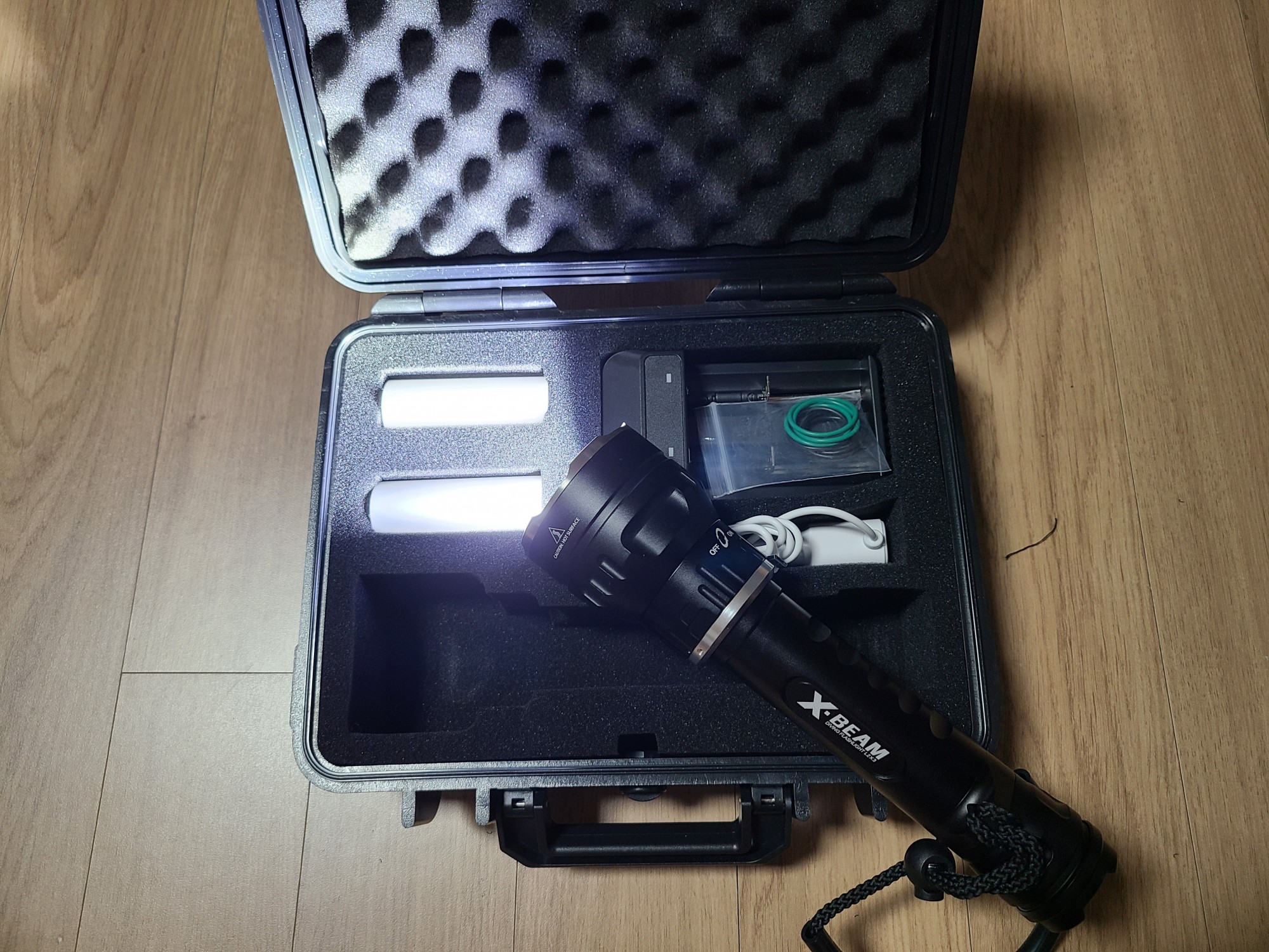 타 고가 제품과 비교해도 밝기에서 월등하며, 세트 상품으로 구성된 배터리와 충전기도 마음에 듦.