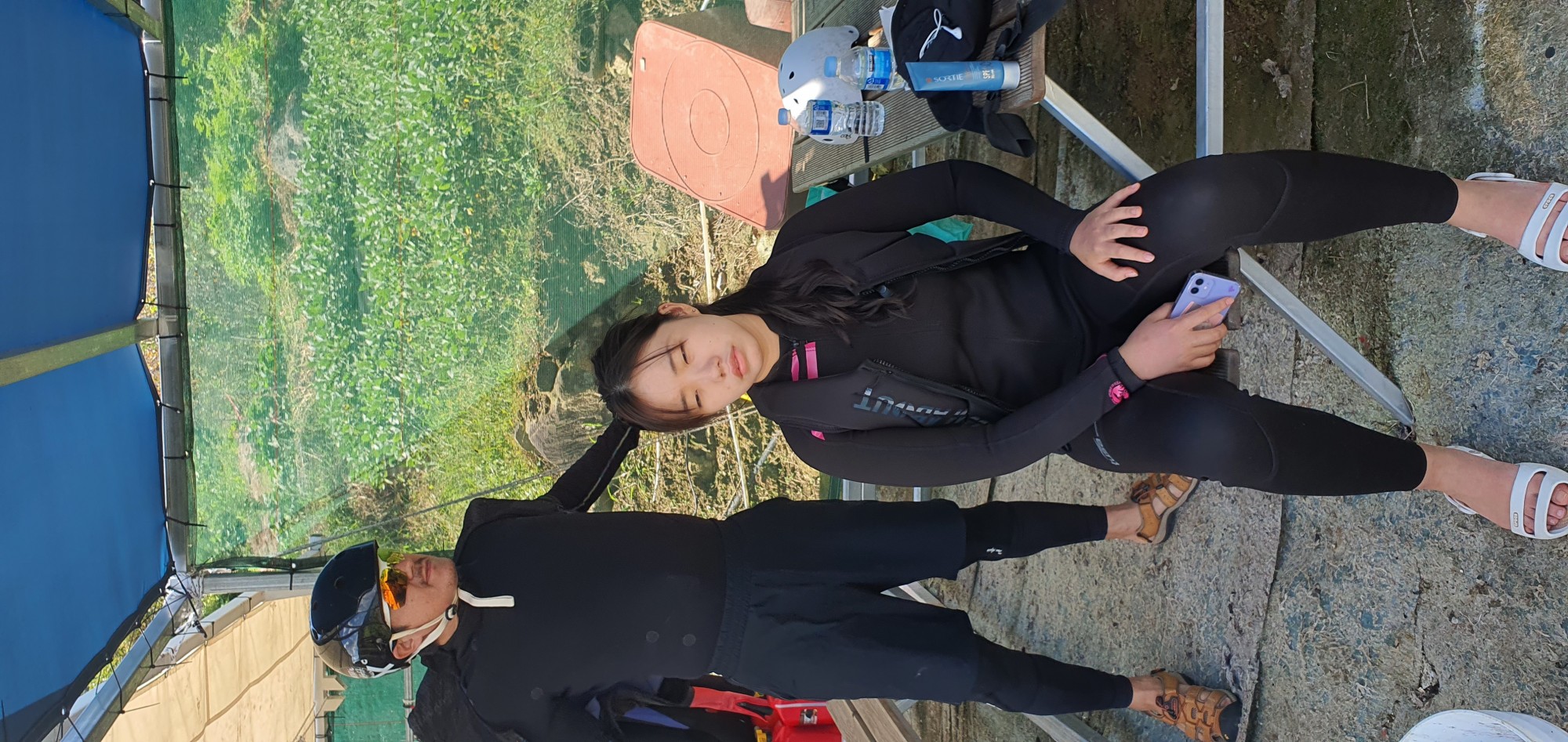 2mm인데도 따뜻하고 착용감 좋아요~~ 투피스라서 착용하고 벗기도 편리하고 검정에 핑크 포인트 좋아요