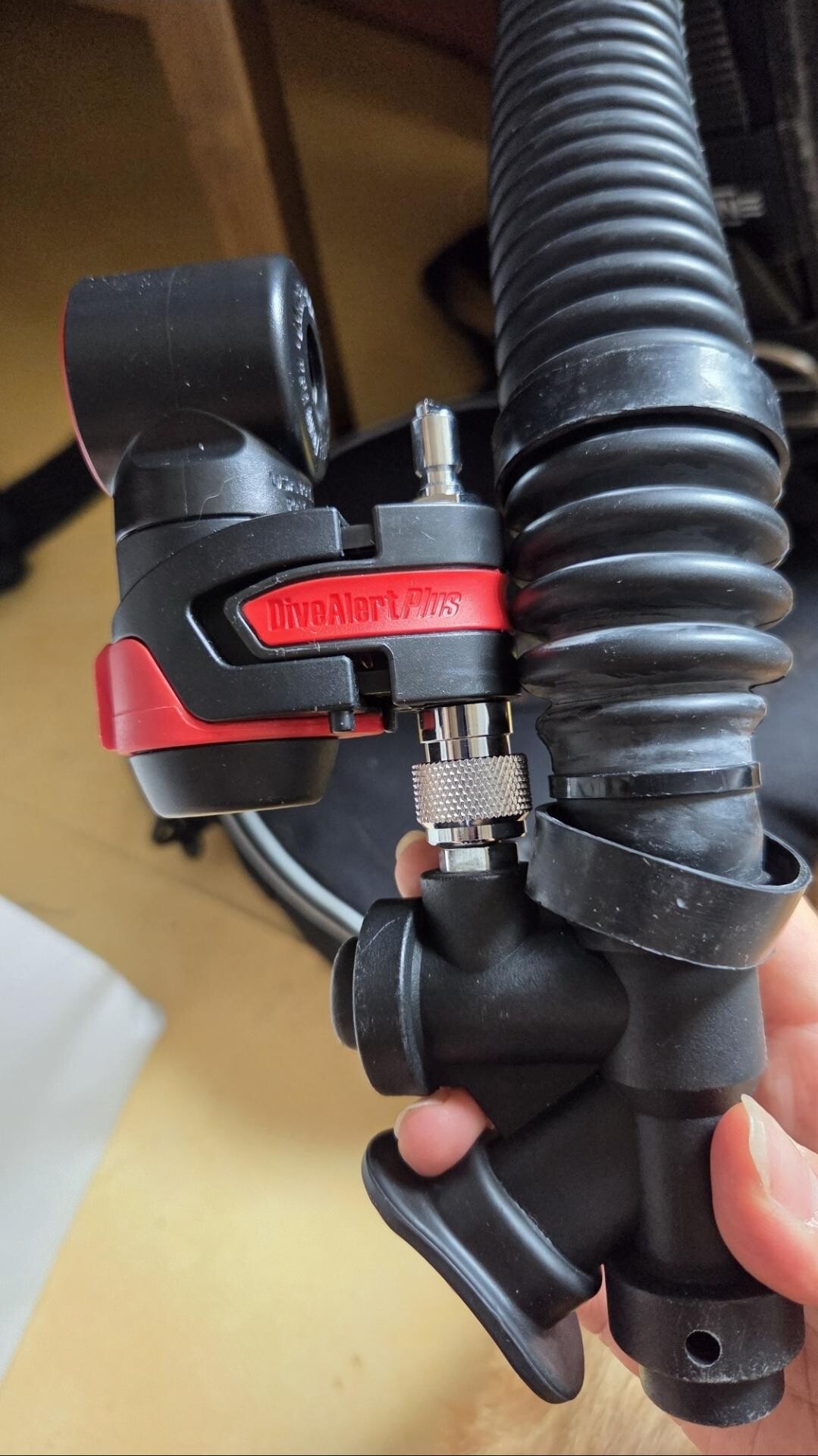 씨큐어 마우스피스로 세팅했습니다. 약간 하드한 느낌은 있지만 치아에 꽉 맞는 느낌입니다. 참고로 스쿠바프로 S600에 세팅했습니다. 다만 전체적인 퀄리티는 조금 떨어지는 듯 합니다. 케이블타이도그렇고….