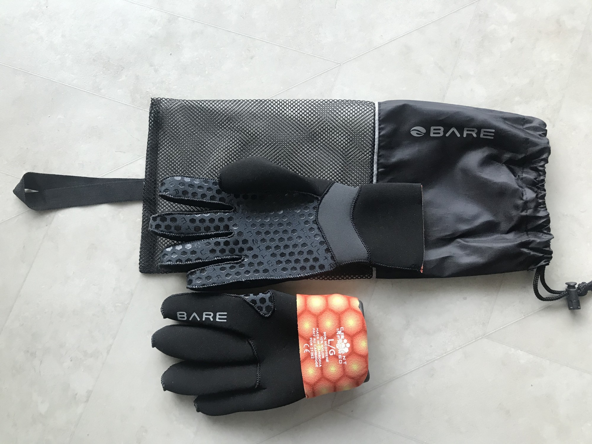 배송된 상품에는 스쿠버 글러브뿐만 아니라 담을 수 있는 작은 망가방도 포함되어 있네요. 여분의 글러브도 같이 넣을 수 있도록 넉넉합니다.