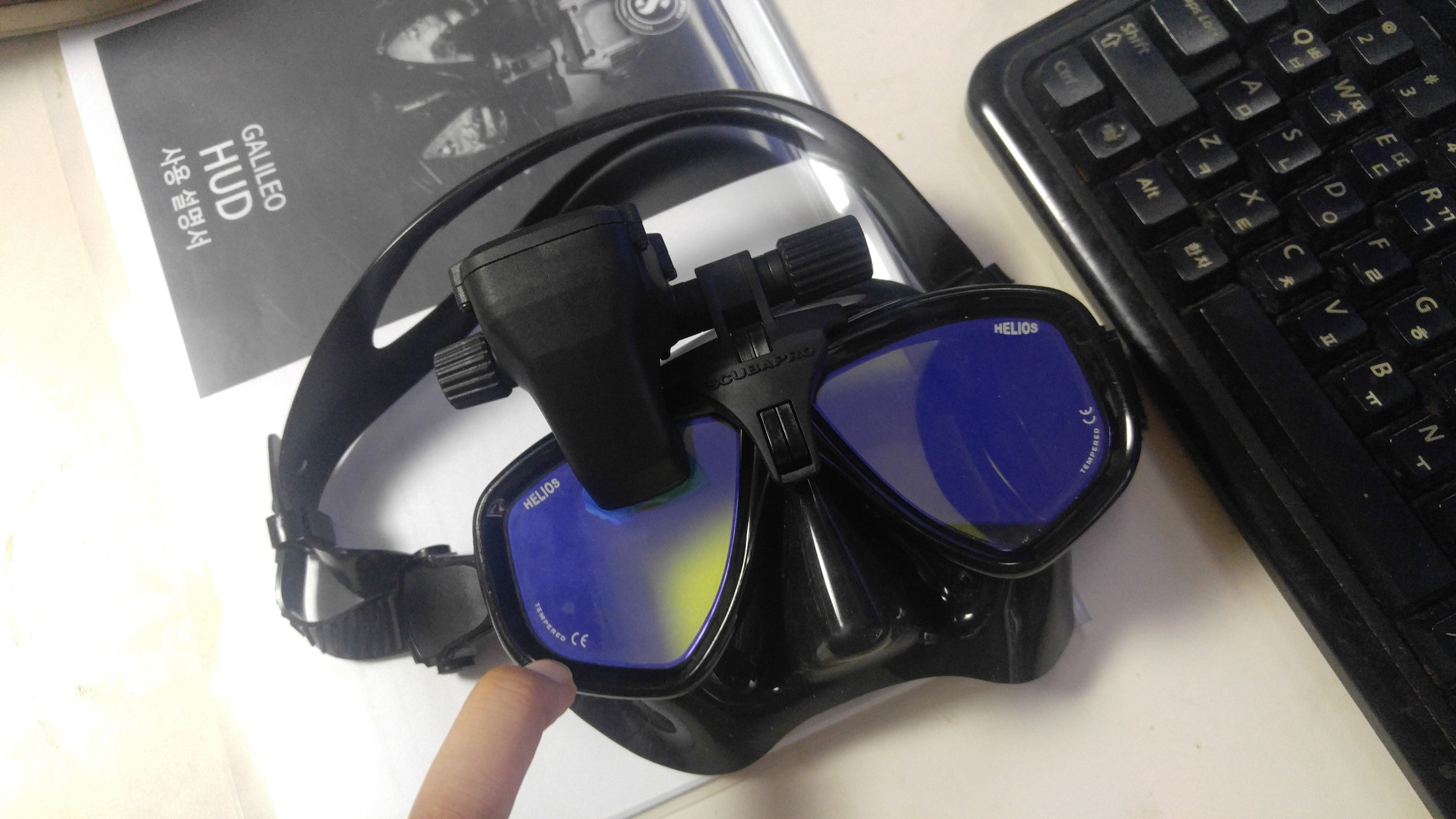 처음에는 오른쪽 눈위에 화면이 있다는게 뭔가 거슬렸는데, 시간이 좀 지나니 괜찮아 졌습니다. 스쿠바프로의 설명에 의하면,