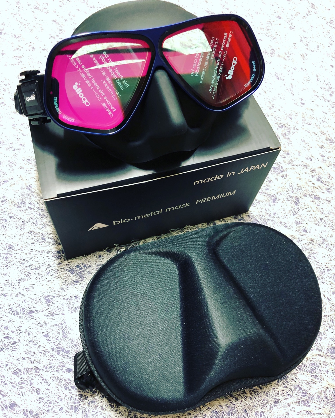 마스크 블랙, 핀 블루, 스노쿨 색은 아쿠아였습니다.