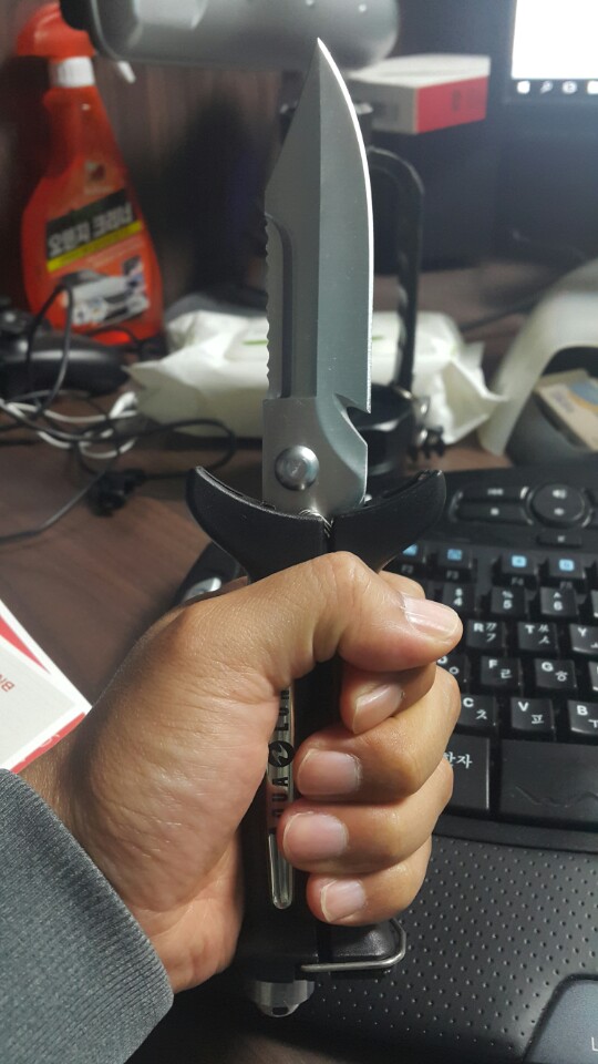 요번 아쿠아렁 50%이벤트때 구입했습니다. 재고가 없어 미니사이즈로 구매했는데 칼날크기가 조금 아쉽긴 하지만 평소 나이프를 자주 사용하지 않는 분들껜 오히려 괜찮을 수도 있겠다 싶네요. 칼날도 제법 날이 잘 서있고 나이프 겸 가위로서는 제법 충실히 만들어진 듯합니다. 다만, 스트랩이라든지 마감에서 조금 아쉬움이 드네요. 정가로 사기에는 조금 고민이 되는 부분입니다.