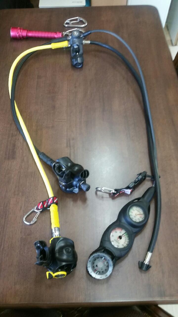 다른 장비들이 모두 다이버의 안전과 직결되는 것들이지만, 특히나 레귤레이터는 말이 필요업지요. 우리나라는 비교적 항상 찬물에서 다이빙을 해야하기 때문에 여유가 되는 회원들에게는 아펙스 제품을 권합니다. 이번에 아주 좋은 가격에 나와서 고민없이 구입해줬네요. 게이지는 순토 3구로 묶어 줬습니다.