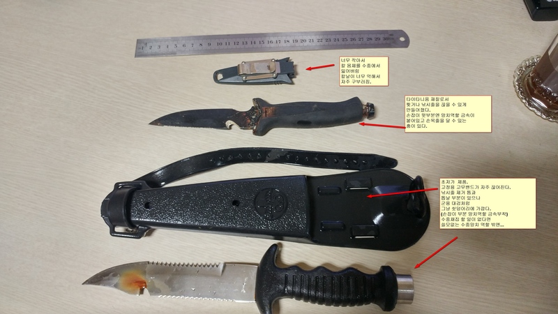 제가 썼는데, 물속에서 망치질 하기엔 참 좋습니다. 그런데 칼날? 현실은 낚시줄조차 못 자릅니다.