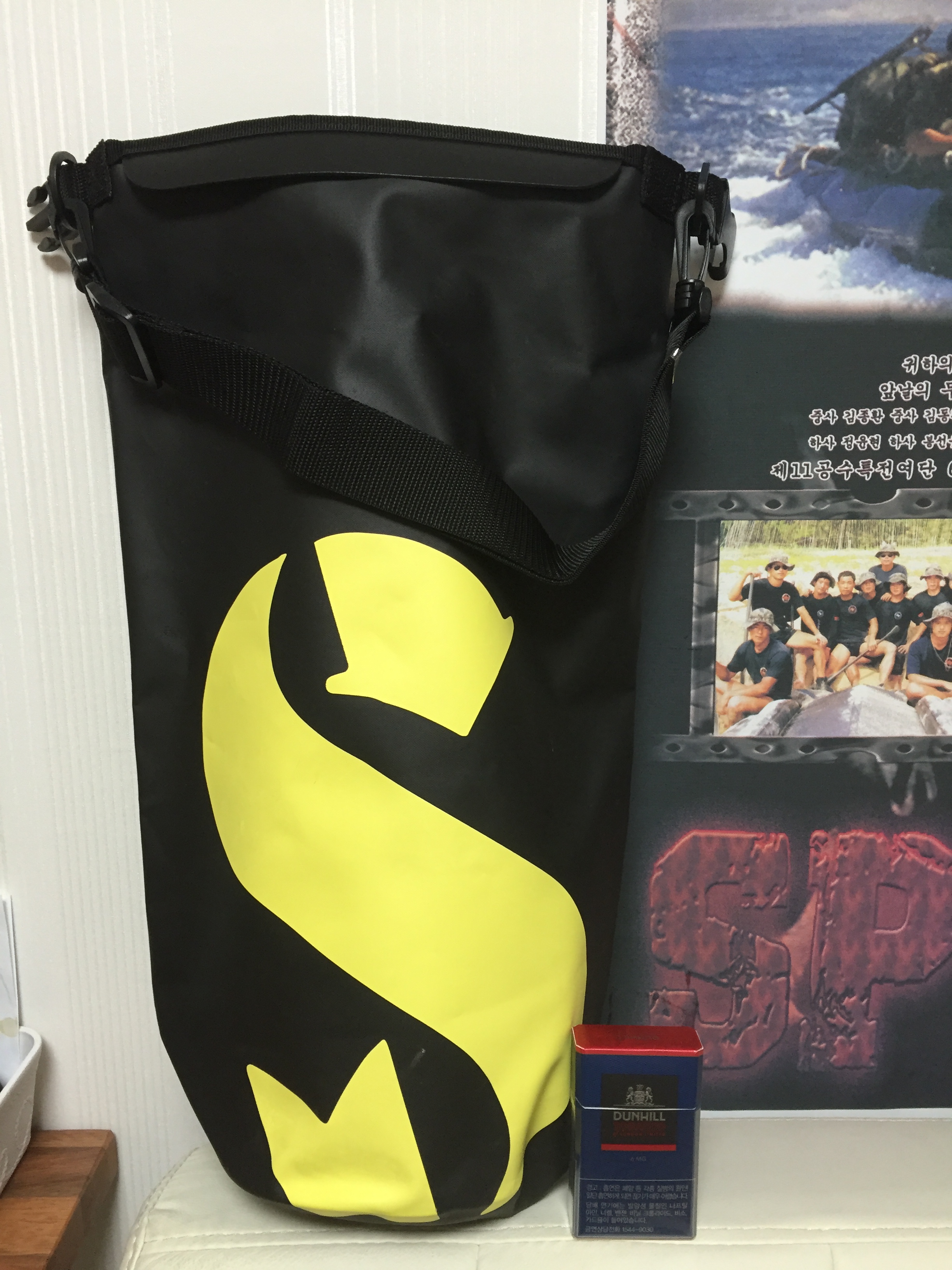 이름대로 방수 잘되구요~그리고 재질이 아주 튼튼하네요~이 번 투어때 아주 잘 사용했습니다 크기도 크고 사진에 일부로 담배갑과 비교해보시라고 담배를 ... 금연해야하는데 ㅠㅠ