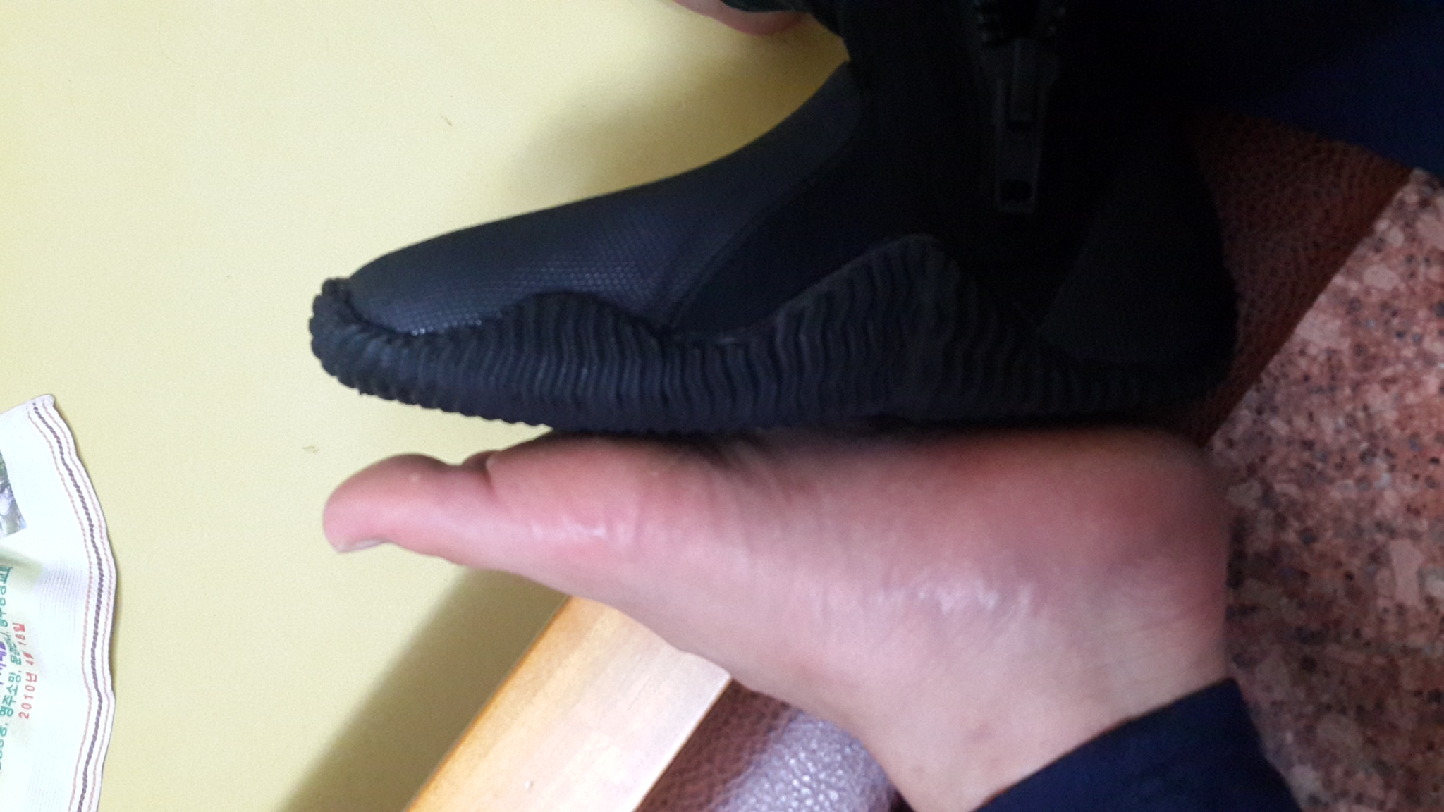 실측은 255정도 되는데 250 시켰습니다. 발볼쪽이 조금 조이는 느낌인데 신다보면 괜찮아질거 같습니다. 가볍고 튼튼하네요 그리고 웨비 오리발 280~290 같이 구매했는데 부츠신고 신으니 딱맞네요 끈으로 된건 신기 싫어서 부츠 신은채로 신을수 있게 사이즈 큰거 주문했습니다. 가격대비 정말 좋습니다. 이제 물에들어갈때 바위에 앉아서 신발 갈아 신을 필요가 없을거 같아요