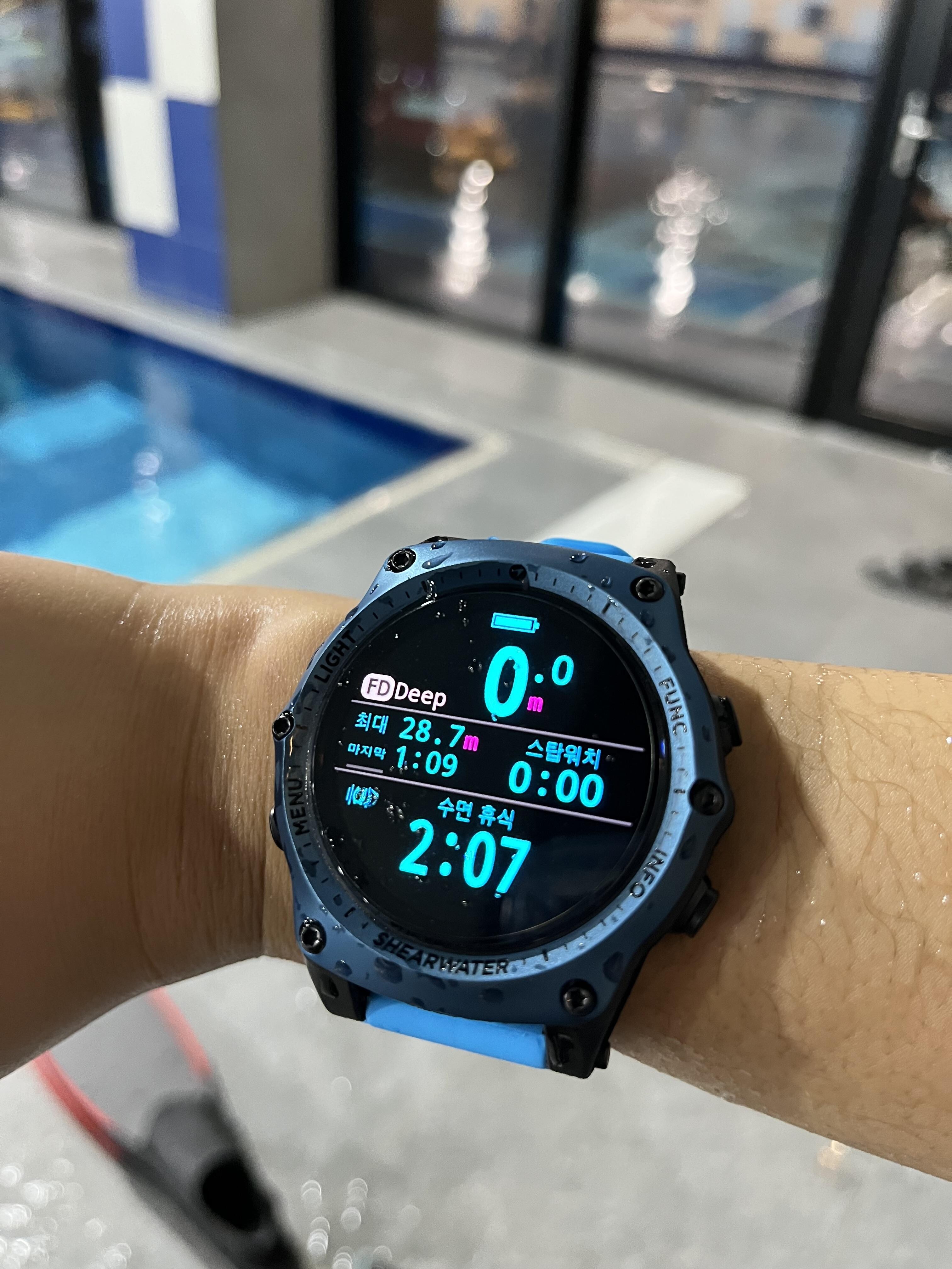 프리다이빙 스쿠버다이빙 두개 다 사용하려고 산 첫번째 컴퓨터 가격은 비싸지만 그만큼 성능이 탑이라고 생각해서 이중구매없이 구매하게 되었습니다 테릭의 가장 장점이라고 생각하는 시안성 물속에서도 환하게 비추는 화면으로 큰 어려움없이 시계를 볼수있어 편합니다! 지금도 아주 잘 사용하고있으며 여러가지 잡기능보다는 다이빙에 특화되어있는 기능만으로 사용할수있어 뿌듯하게 생각하고있습니다!